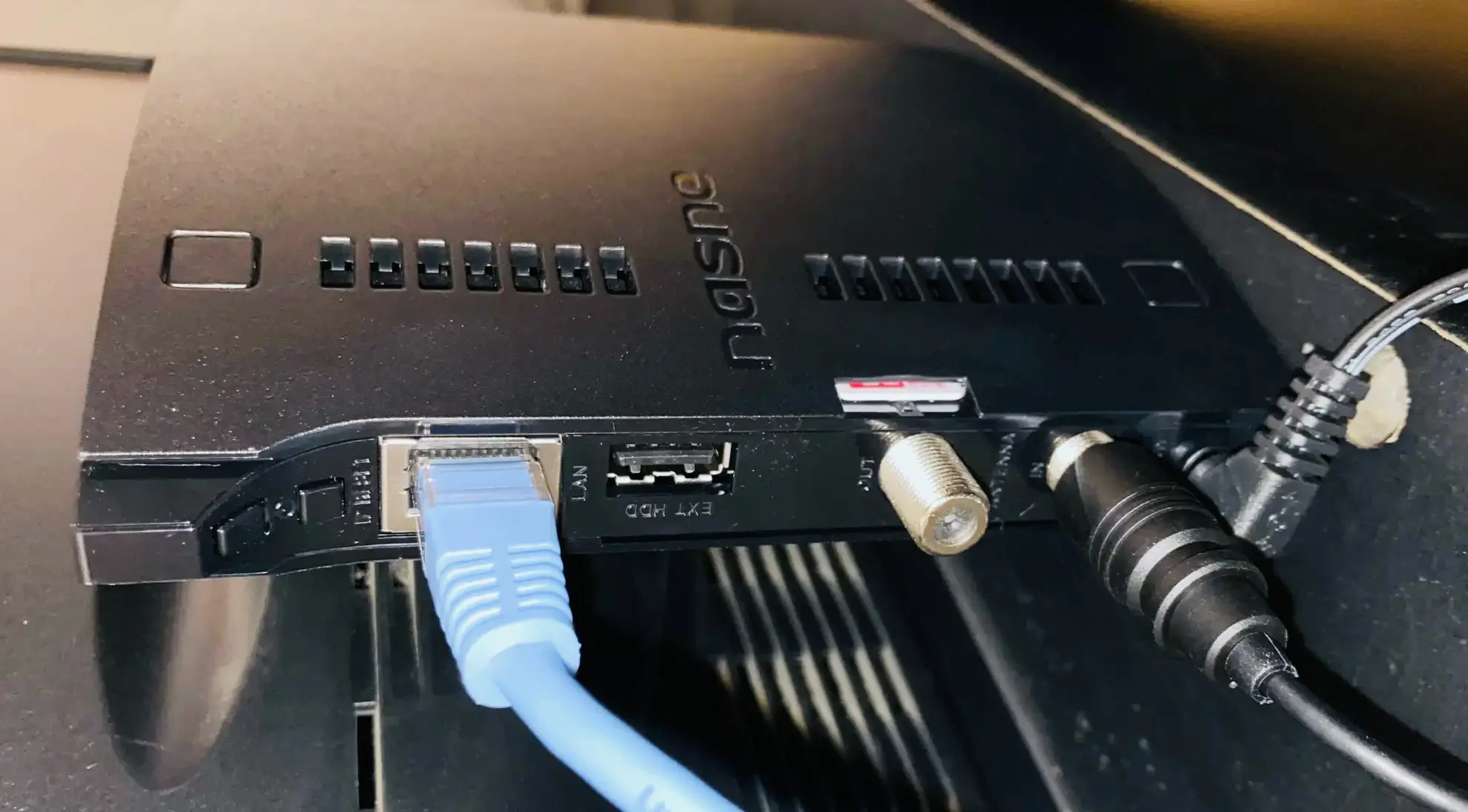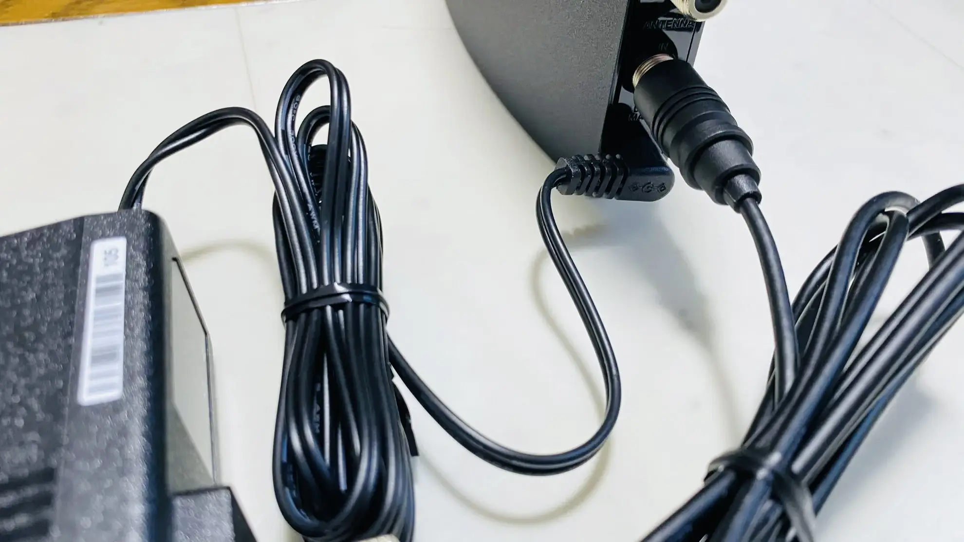 これから接続する。まず、画像のように一番下のDC IN 12V端子にACアダプターを接続して、そのすぐ上のANTENA IN端子にアンテナケーブルを接続する。