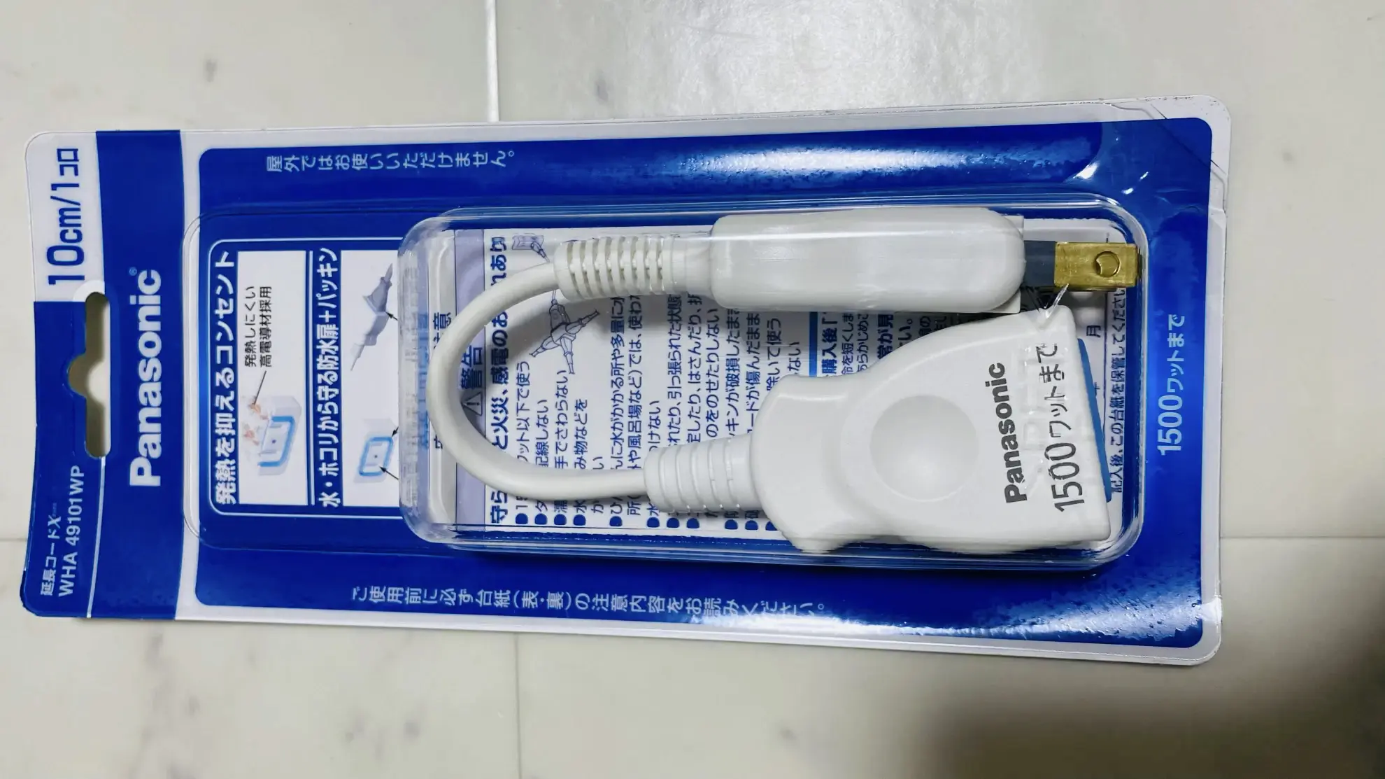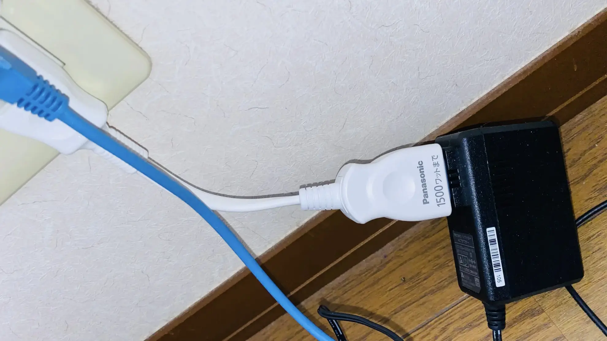 それからこの中継機はコンセントに直付するタイプで、壁の電源プラグを多く占有してしまう。さらにnasneのACアダプターも大きいため干渉して壁のコンセントにはそのまま刺さらない。それを解消するべく、10cmのPanasonicの延長コードも購入した。