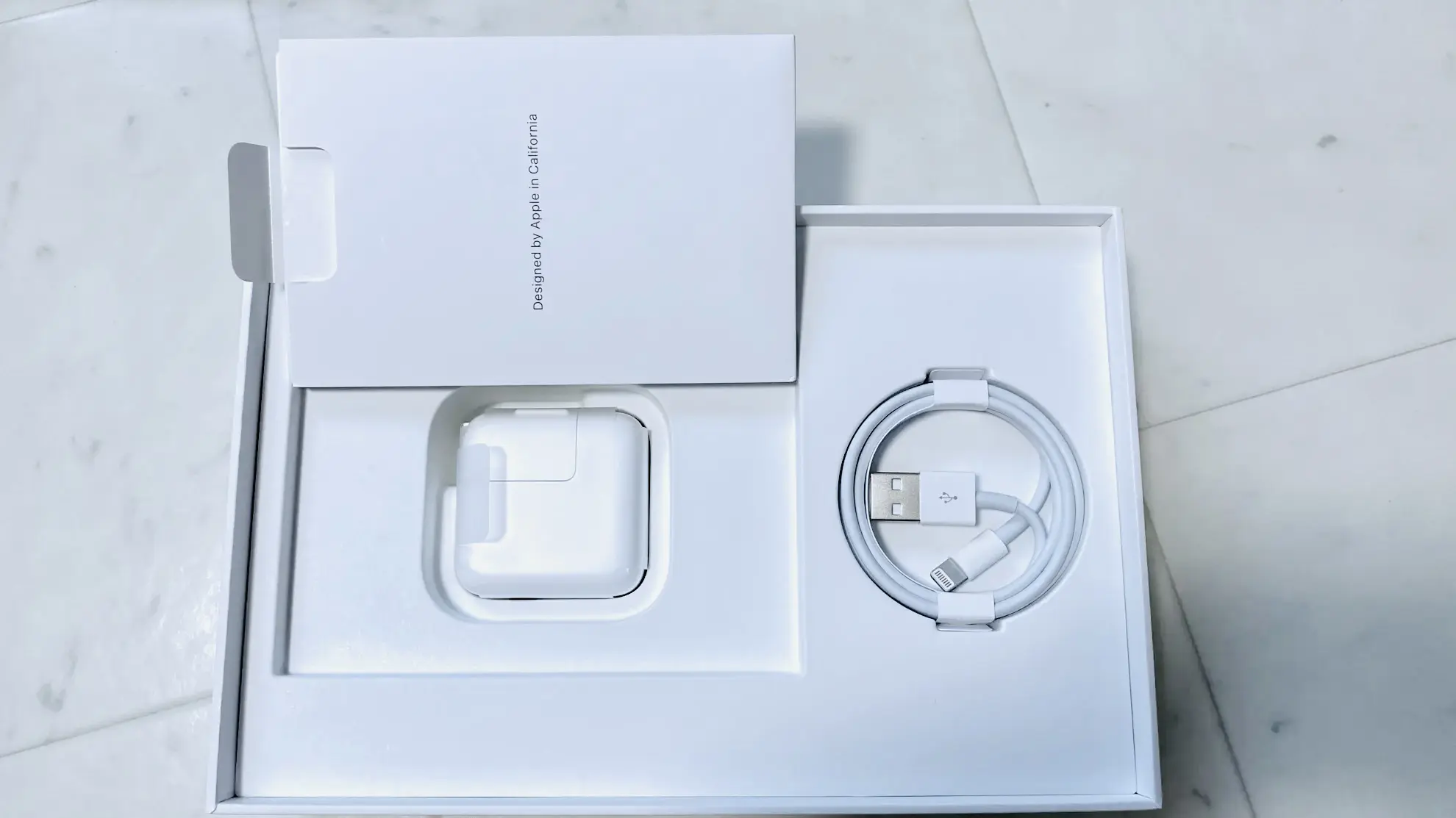 同梱物は本体の他にLightning-USBケーブルとUSB-A充電器。