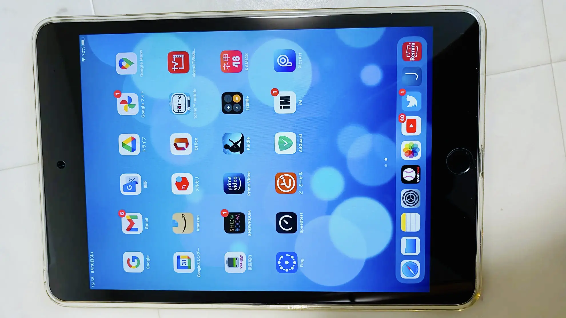 iPad miniを裸で使っていると、落として傷つきそうで怖いのでAmazonで透明TPUケースも購入した。