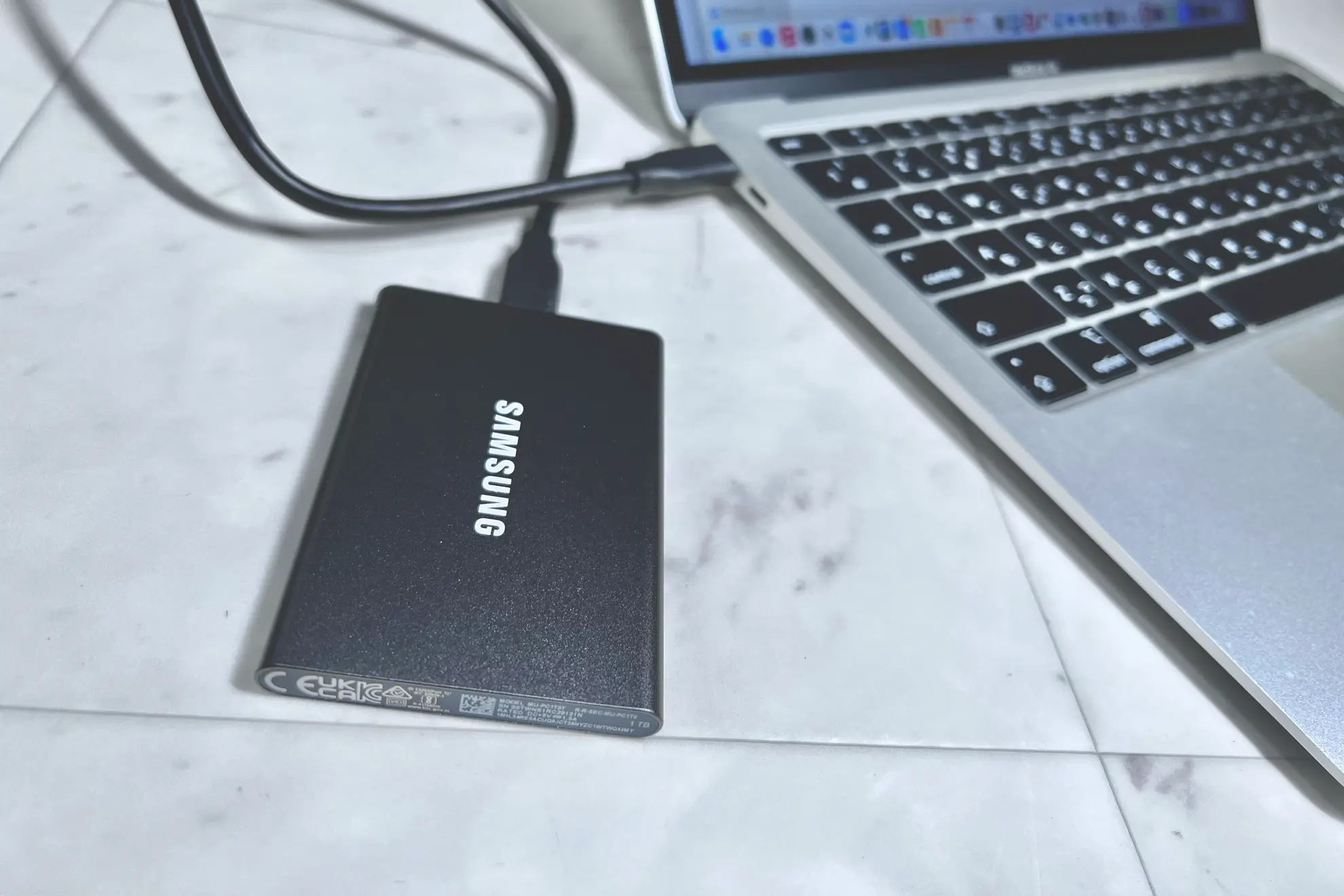 ポータブルHDDからポータブルSSDをに変えてみて1番の差は全てにおいてやっぱり速いなと思った点だ。データの読み書きが早いのはもちろんのこと、Macbookにつなげてストレージを認識して使えるようになるまでが、HDDでは少し時間がかかっていたのがSSDだと一瞬だ。他には、SSDにはHDDのように回るディスクがあるわけではないので、HDDは少し音がうるさいがSSDでは全くの無音だ。それと、HDDは振動ですぐにデータが壊れてしまうという可能性が結構高いが、SSDは特性上、少しの振動や落下ぐらいでは簡単に壊れないのでそこの耐久性も持ち歩いたりタフな使い方をする人にとっては安心して持ち運べる。