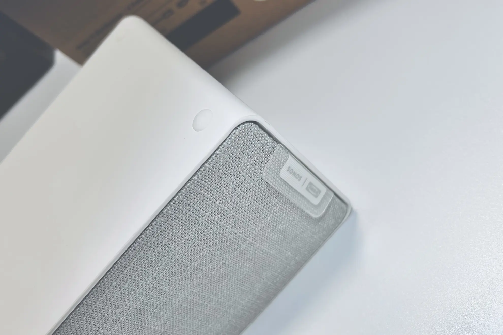 スピーカーコーンのカバー部分には、さりげなく、SONOSとIKEAのロゴが印刷されているタグがある。このタグ部分を引っ張ると、スピーカーカバーを外せる。