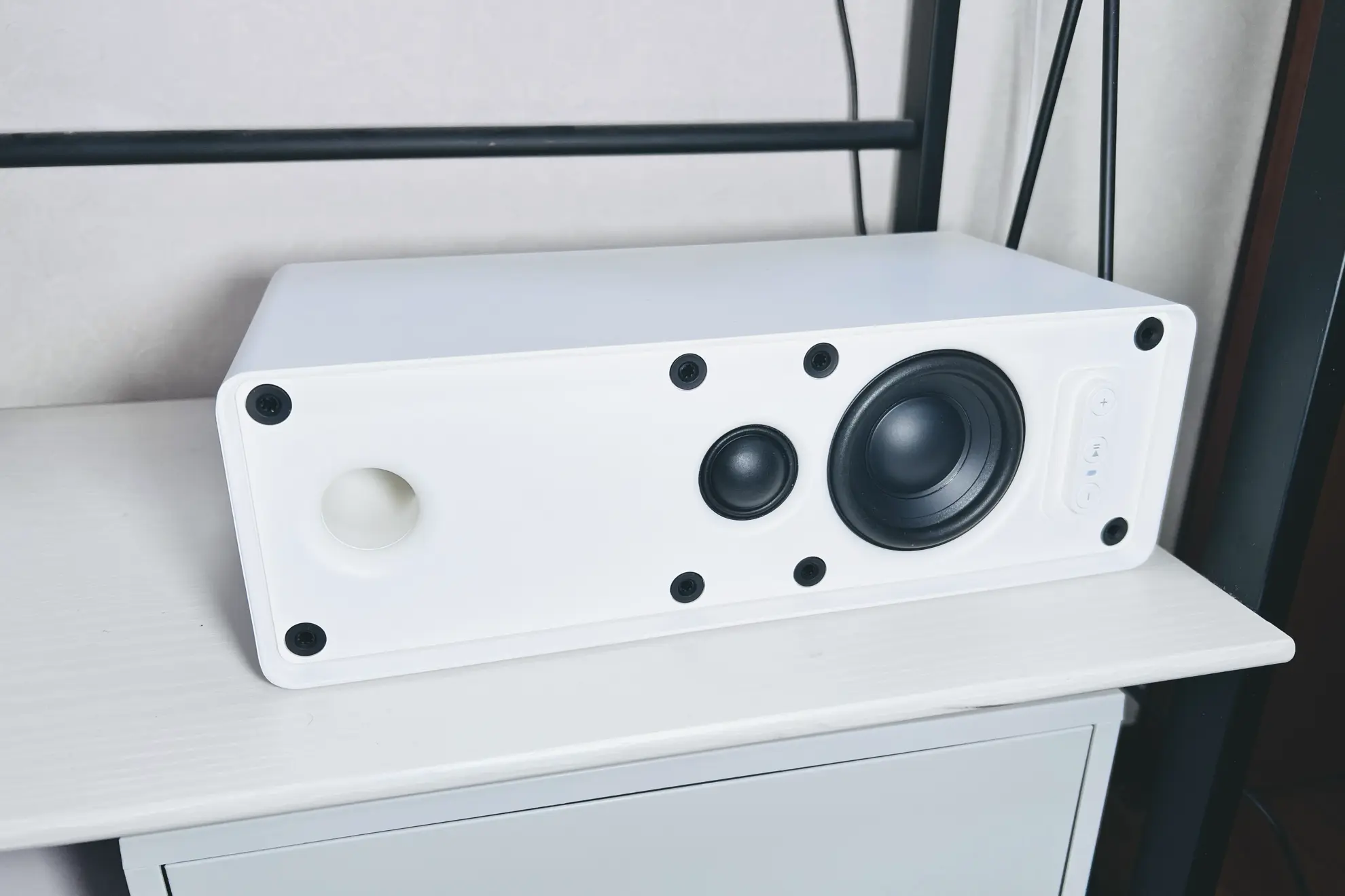 これはカバーを外した際の画像。7cmのウーファーと3.5cmのツイーターが一つずつ搭載されていた。肝心の音質だがスピーカーの直径こそ小ぶりだが、媒体自体はかなり大きいため、とても迫力のある音を鳴らす。1.5万円の価格のスピーカーがここまでいい音を鳴らすのかと本当に驚いた。低音もやりすぎと思う程、迫力があって音の解像度も十分であった。そして2台でステレオスピーカーにすると、もっと迫力が増す。価格を考えるとコスパは最高だと言える。2万円以上するベストセラーのBOSE SoundLink Miniよりも全然音質はSYMFONISKの方が上だろう。