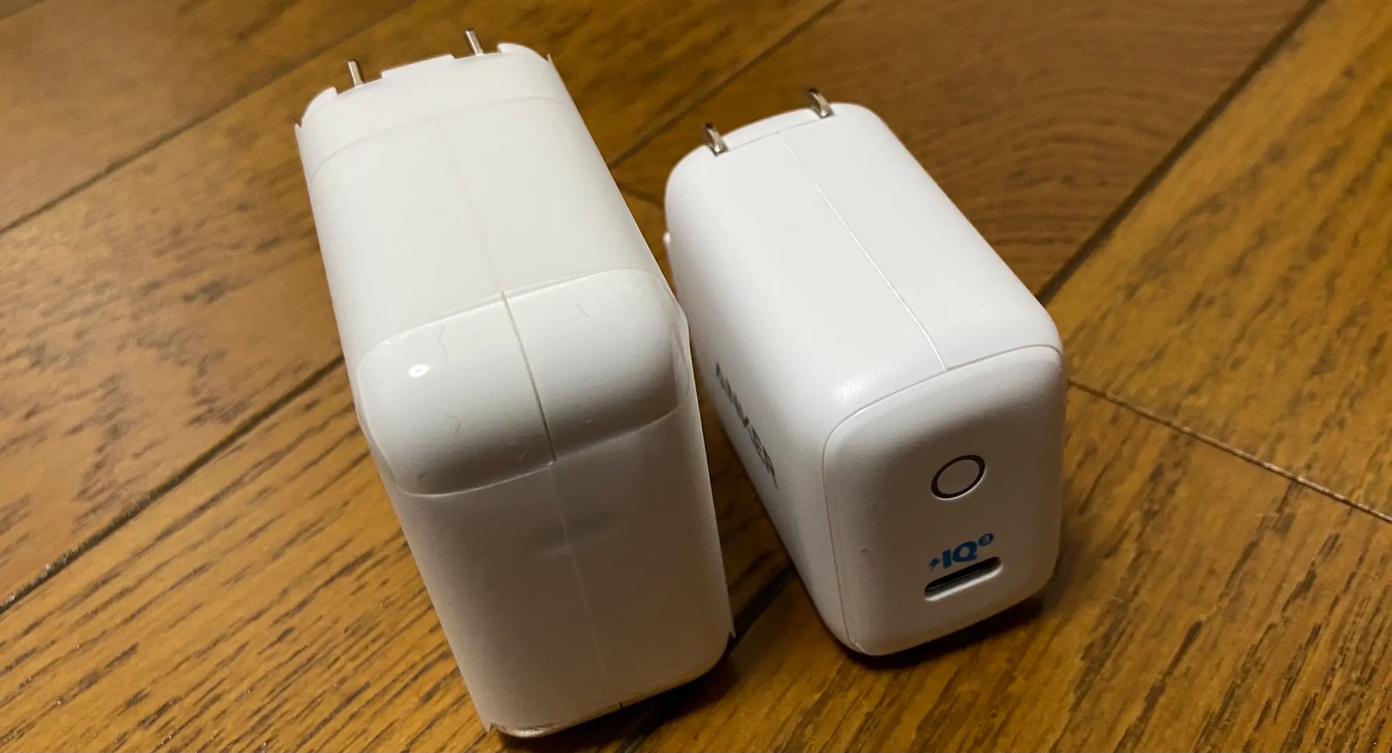 Apple純正の充電器は他に市販されている充電器よりも大きくて重いのでAnkerの充電器を使用していくつもり。
